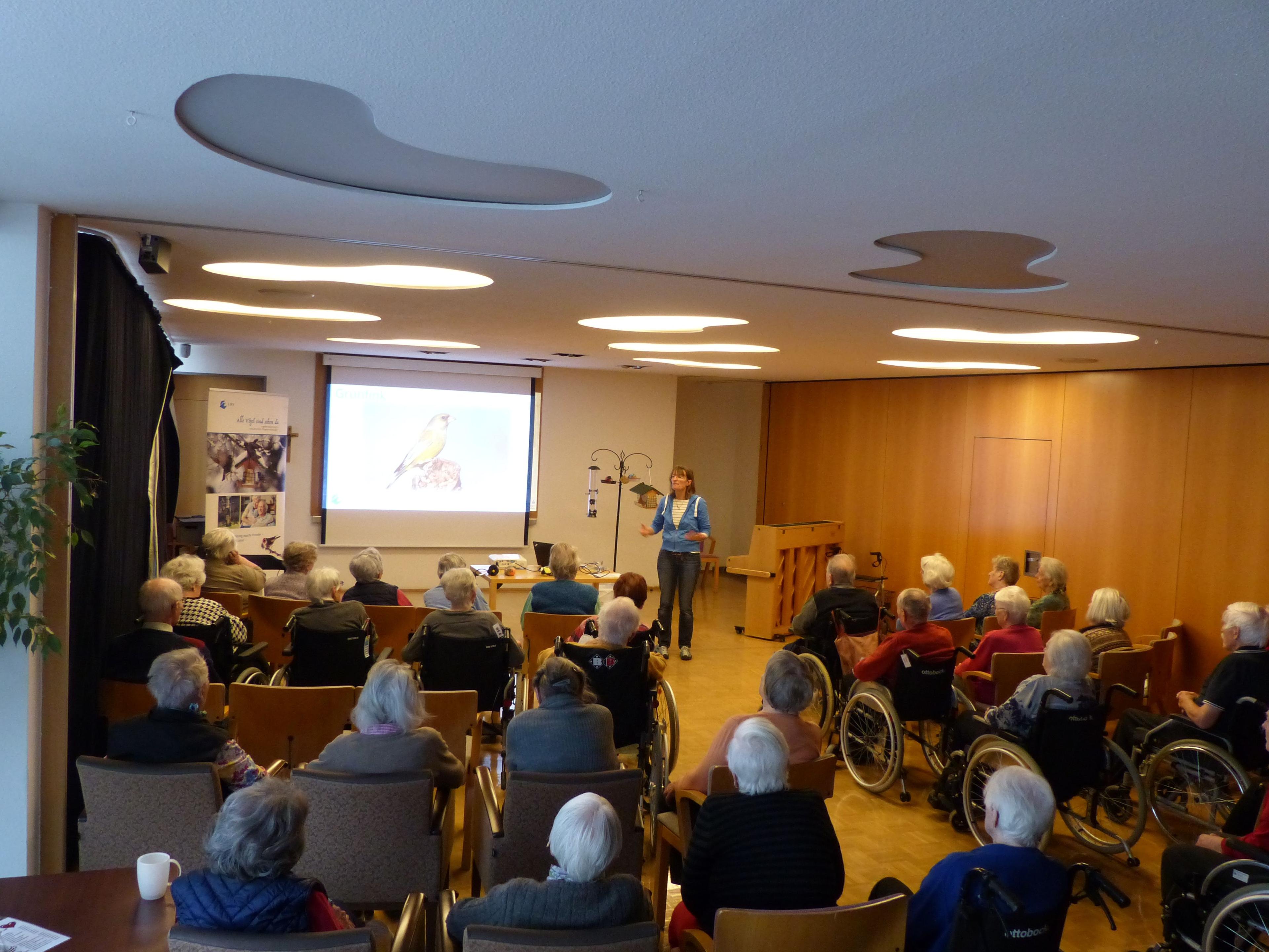 Einen eigenen Zugang zum Garten mit einer sonnigen Terrasse steht für unsere spezielle Wohngruppe für demenziell erkrankte Menschen zur Verfügung. Zusätzlich verfügen wir über eine Voliere und zahlreiche Aquarien, an denen sich besonders Tierfreund*innen erfreuen können.